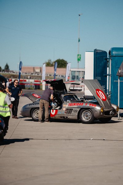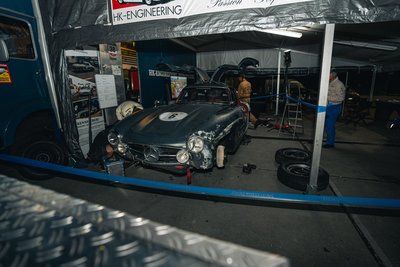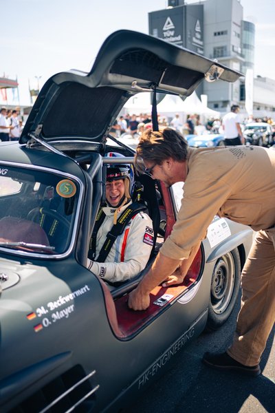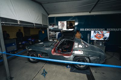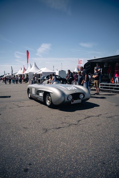 Neben unseren Flügeltürern waren viele hochkarätige Fahrzeuge vertreten vom Jaguar C Type bis zum Bizzarrini und vor allem viele Maserati Rennwagen. Dieses Rennen fand unter der Schirmherrschaft von HK-ENGINEERING statt. Unser Stand inmitten des Fahrerlagers war der Publikumsliebling. Zu Bestaunen gab es neben den