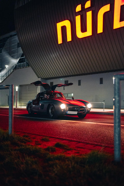 Die Trommelbremse war schon in den fünfziger Jahren das Hauptproblem bei den Flügeltürern im Rennsportgewesen. Hans Klenk zum Beispiel hatte sich beide Beine gebrochen, als er mit einem Flügeltürer auf der Nordschleife infolge Bremsversagens abflog. Trotzdem war unser Team guter Dinge und Christian Pfessdorf und Dr. Klaus Lehr auf seinem MB 300SLS Specialkonnten jeweils in ihrer Klasse den ersten Platz belegen. Der Nürburgring hat mal wieder viele alte Bekannte zusammen geführt und bot Gelegenheit, neue Kontakte zu knüpfen. Wir freuen uns schon aufs nächste Jahr.