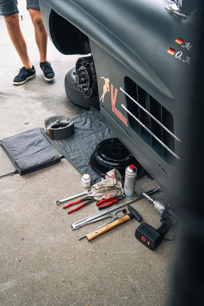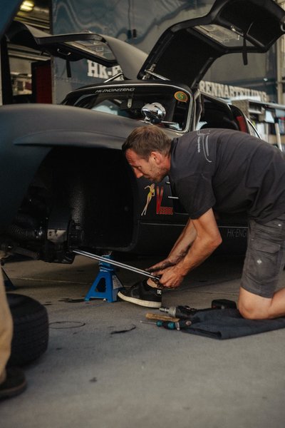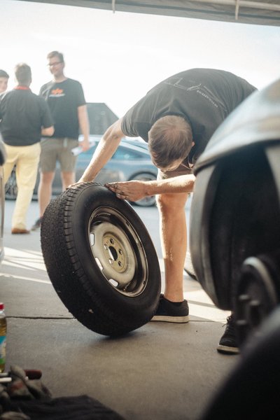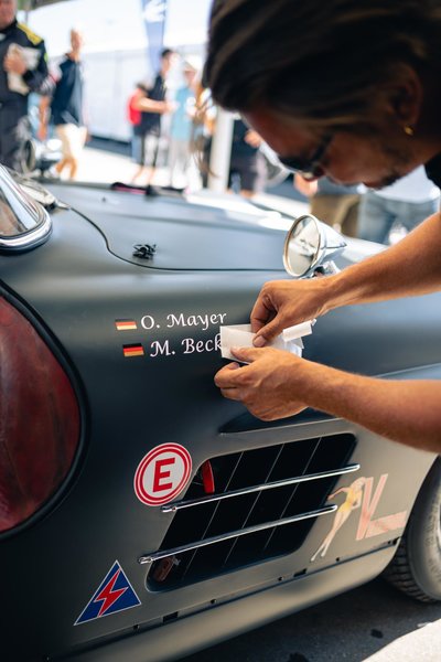 Christian und sein Vater Ralph sind ein eingeschweisstes Team in Sachen Autorennen und transportieren ihren Rennflügeltürer (den Christian immer selbst über die Piste jagt) zu jedem Rennen stilgerecht in ihrem blauen Renntransporter. Unserer Auto ging dieses Mal mit Matthias Beckwermert an den Start, der zum ersten Mal am Steuer eines unserer Fahrzeuge war.