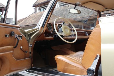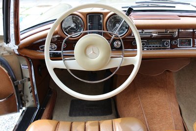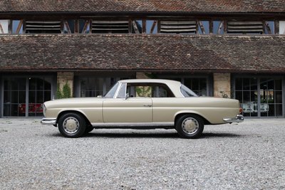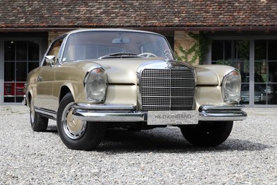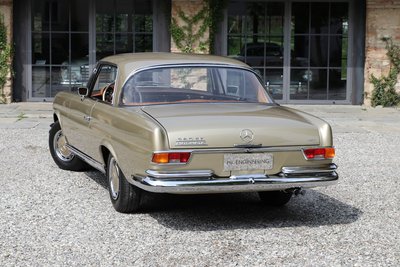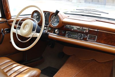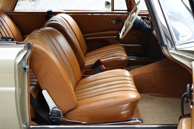 Dieses wunderschöne Mercedes-Benz 280 SE Coupé in außergewöhnlicher Farbkombination mit Lackierung in Tunisbeige-metallic, kombiniert mit cognacfarbener Lederausstattung wurde am 19. April 1968 erstmals in Deutschland zugelassen. Es handelt sich um ein sehr originales Fahrzeug mit einer Gesamtfahrleistung von nur 110.000 Kilometern und sehr gut erhaltener originaler Lederausstattung. Das Coupé wurde zwischen 2005-2015 im Auftrag des damaligen Besitzers bei der Fa. Kienle umfangreich restauriert und gewartet. Im Zuge dieser Arbeiten erfolgte eine komplette Überholung von Motor, Getriebe, Vorder- und Hinterachse, Tausch sämtlicher Verschleißteile, sowie Aufarbeitung des originalen Leders und des Holzes. Eine ausführliche Restaurationsdokumentation mit Rechnungen im Wert von ca. 55.000€ liegt vor. Wir übergeben dieses begehrte matching numbers W111 Coupé in sehr gutem Zustand, zulassungsfertig mit neuer Hauptuntersuchung und H-Zulassung. Zwischenverkauf und Irrtümer für dieses Angebot sind ausdrücklich vorbehalten. Ausschlaggebend sind einzig und allein die Vereinbarungen im Kaufvertrag.