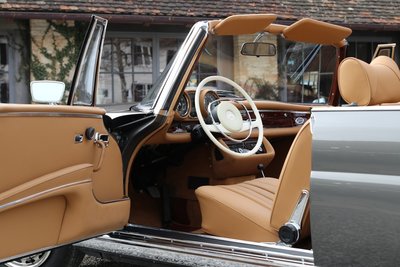 Highlights • wunderschöne Farbkombination in Anthrazit und hellbrauner Innenausstattung • Vollrestauration der gesamten Karosserie und Technik • TÜV-Gutachten aus dem Jahr 2020 mit der Benotung 1 und 530.000 Euro Marktwert. • begehrte BEHR Klimaanlage • matching numbers laut vorliegender Datenkarte Wunderschönes Mercedes-Benz 280 SE 3.5 Cabriolet in Anthrazitgrau Metallic kombiniert mit einer hellbraunen Lederausstattung und schwarzem Verdeck. Das Cabriolet wurde im Jahr 1970 nach Deutschland ausgeliefert, war anschließend einige Jahre in den USA und fand seinen Weg im Jahr 2016 wieder zurück nach Deutschland! Trotz der guten Substanz entschied sich der aktuelle Besitzer für eine "frame off" Vollrestauration. Diese wurde im Jahre 2020 auf höchsten Niveau fertiggestellt. Neben der Lackierung auf blanken Blech wurde die gesamte Technik, Chrom, Lederausstattung und das Verdeck erneuert. Zusätzlich wurde eine BEHR Klimaanlage nachgerüstet. Zahlreiche Rechnungen und Bilder dokumentieren diese Arbeiten. Sichern Sie sich dieses seltene matching numbers Flachkühler Cabriolet der absoluten Spitzenklassen in wunderschöner Farbkombination, H-Zulassung und einem aktuellen TÜV-Gutachten aus dem Jahr 2020 mit der Benotung 1 (sehr gut) und 530.000€ Marktwert. Zwischenverkauf und Irrtümer für dieses Angebot sind ausdrücklich vorbehalten. Ausschlaggebend sind einzig und allein die Vereinbarungen im Kaufvertrag.