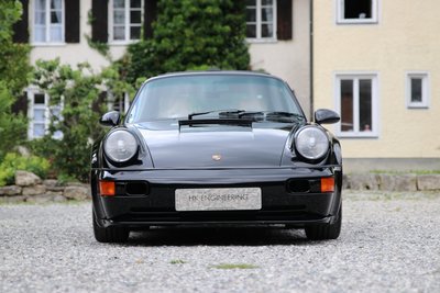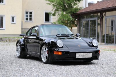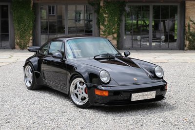 Highlights: • eines von nur 1.437 gebauten Turbo Coupés • Motor durch Porsche Spezialisten neu überholt • insgesamt nur 4 Besitzer • originale Bordliteratur vorhanden • lückenloses Scheckheft (immer im selben Porsche Betrieb) • Classic Data Wertgutachten über 1- und 290.000 Euro vorhanden • umfangreiche Wartungsdokumentation vorhanden • matching numbers & matching colours lm Januar 1993 war es so weit, die dritte und letzte Variante des Porsche 964 Turbo erblickte das Licht der Welt. Der 3.6 Liter Boxer leistet 360 PS, verfügt über ein maximales Drehmoment von 520 Newtonmetern bei 4200/min, 18-Zoll-Räder und die Bremsanlage des Turbo S. Er bleibt eine Seltenheit. Stuckzahl bis Ende 1993: 1437 Exemplare. Unser wunderschöner Porsche 964 wurde am 1. September 1993 an seinen ersten Besitzer nach Florida, USA ausgeliefert. Dieser bestellte den Wagen im klassischem schwarz mit beigen Leder-Interieur. Der Turbo wurde stets im selben Porsche Betrieb, RMG Enterprises gewartet, es existieren 15 Wartungseinträge im Originalem Serviceheft. Der aktuelle Besitzer hat den Wagen selbst in den USA erworben und 2016 nach Deutschland importiert. Anschließend erfolgte eine umfangreiche Motorrevision bei einem Porsche Meisterbetrieb, dort erhielt der Porsche zusätzlich den Front- sowie Heckspoiler vom Turbo S, der Original Spoiler ist selbstverständlich noch vorhanden. Zahlreiche Rechnungen sowie die Einträge im Serviceheft bestätigen die Originale Laufleistung sowie die Vorbesitzer. Beim Import im Jahr 2016 wurde der Tacho im Porschezentrum bei 94.718 Meilen getauscht. Sichern Sie sich diesen zeitlosen Porsche Turbo mit 3.6 Liter Boxermotor und umfangreicher Wartungshistorie. SA Codes: • C02 USA OHNE SONDERSTAATEN, AB '91 KOMPLETTE USA • XD4 RADNABENABDECKUNG MIT PORSCHEWAPPEN • 586 LORDOSENSTUETZE • 650 ELEKTRISCHES SCHIEBEDACH • 691 CD-PLAYER "CD-2" MIT RADIO • 718 VERSCHIEBUNG DER VIN "R" AB MAI 1993 FUER USA/KANADA • 935 SITZBEZUEGE HINTEN, RAFFLEDER • 980 RAFFLEDER-SITZANLAGE Zwischenverkauf und Irrtümer für dieses Angebot sind ausdrücklich vorbehalten. Ausschlaggebend sind einzig und allein die Vereinbarungen im Kaufvertrag.