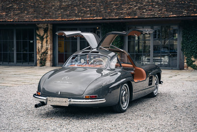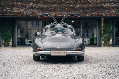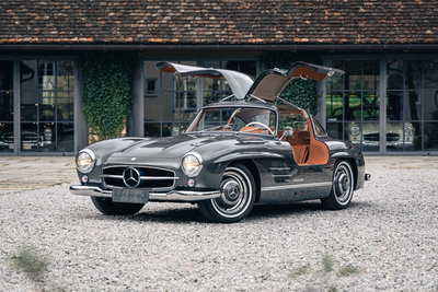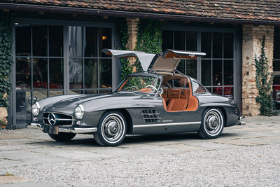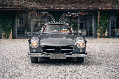 HIGHLIGHTS: • Wunderschönes, perfekt restauriertes Mercedes-Benz 300 SL Coupé aus dem Jahr 1956 in Anthrazitgrau mit edlem Lederinterieur in Cognac • Zwischen 2021 und 2023 von HK-ENGINEERING umfassend vollrestauriert, seither lediglich 1.700 Kilometer gefahren • Restaurationsumfang von über 580.000 €, inklusive Neulackierung auf blankem Blech, neuem Lederinterieur sowie einer kompletten technischen Überholung • Bestandteil der renommierten James Leak Collection (USA), insgesamt nur sechs dokumentierte Vorbesitzer • Erstauslieferung am 5. September 1956 über Mercedes-Benz New York in Feuerwehrrot (DB 534) mit schwarzem Lederinterieur (953) • Laut Datenkarte mit umfangreicher Sonderausstattung, darunter: Sonderpolsterung, Instrumente mit englischer Beschriftung, sealed beam-Scheinwerfer mit getrenntem Standlicht, Stoßstangenhörner, Winkelmesser und lose mitgelieferte Auswuchtgewichte, Scheibenräder mit verchromter Schüssel und hochglanzpolierter Felge, Scheibenwaschanlage sowie 1 kg Lackreserve • Laut Mercedes-Benz Datenkarte mit begehrten Matching Numbers Zwischenverkauf und Irrtümer für dieses Angebot sind ausdrücklich vorbehalten. Ausschlaggebend sind einzig und allein die Vereinbarungen im Kaufvertrag.