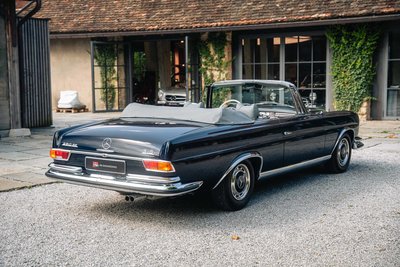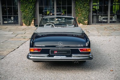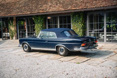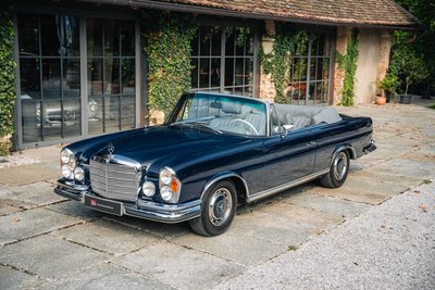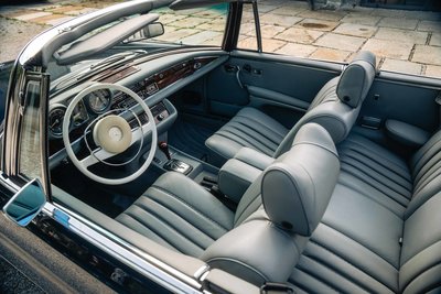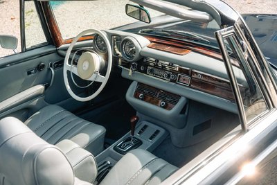 Highlights: • Wunderschönes Mercedes-Benz 280 SE 3.5 Cabriolet aus dem Jahr 1971 in eleganter Farbkombination: Dunkelblau, graues Lederinterieur und blaues Verdeck. • Eines von nur 1.232 gebauten Exemplaren mit dem begehrten 3,5-Liter-V8-Motor und 200 PS. • Im Jahr 2009/2010 von BRABUS vollständig restauriert – hervorragender Gesamtzustand mit exzellenter Motor-Kompression. • Seltene Vollausstattung inklusive Klimaanlage, elektrischen Fensterhebern und Mittelschaltung. • Seit der Restauration 2010 in Sammlerhand, seither nur 7.900 Kilometer gefahren. • Umfangreicher Service inklusive Austausch von Verschleißteilen bei HK-ENGINEERING im Mai 2025 durchgeführt. Zwischenverkauf und Irrtümer für dieses Angebot sind ausdrücklich vorbehalten. Ausschlaggebend sind einzig und allein die Vereinbarungen im Kaufvertrag.