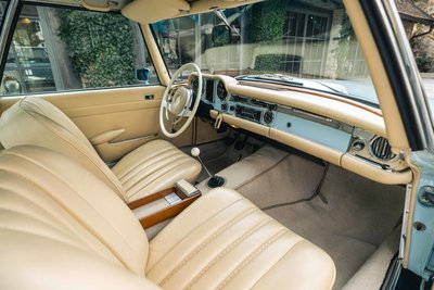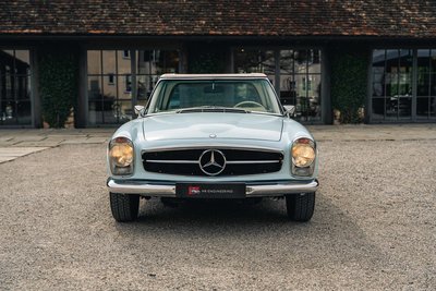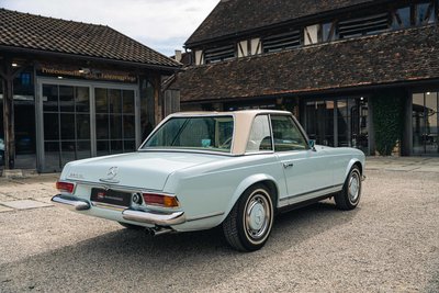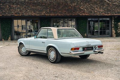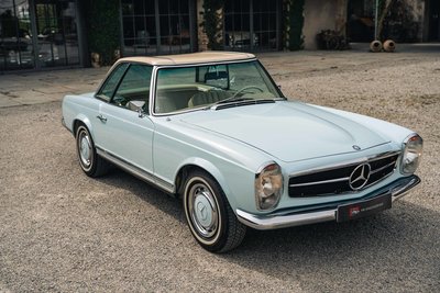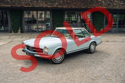 Highlights: • Eines von nur 283 Exemplaren weltweit mit originalem 5-Gang ZF-Getriebe – 2024 generalüberholt bei ZF Friedrichshafen. • "matching numbers" laut Mercedes-Benz Datenkarte, unfallfrei, ungeschweißt – beeindruckend original mit nur 81.363 km Laufleistung. • Europäische Erstauslieferung am 17.04.1968 in Italien, ab Werk mit Coupe-Dach, Colorglas, Servolenkung & kurzer Achsübersetzung. • Aufwändig restauriert 2001/02 durch Mechatronik und Motoren-Sauer – 22 Jahre in privater Sammlung, sehr behutsam genutzt. Diese außergewöhnliche 280 SL Pagode wurde am 17. April 1968 in Italien ausgeliefert und am 18. Januar 1970 erstmals in Deutschland zugelassen. Es handelt sich um eines von weltweit nur 283 Fahrzeugen, die ab Werk mit dem seltenen originalen 5-Gang ZF-Getriebe ausgestattet wurden – keine Nachfertigung! Das Getriebe wurde im Frühjahr 2024 von der ZF Friedrichshafen AG fachgerecht generalüberholt. Der Wagen befindet sich in einem bemerkenswerten Originalzustand: Er ist "matching numbers", unfallfrei und ungeschweißt – ein äußerst seltenes und vollständiges Exemplar. Die Laufleistung beträgt nachweislich 81.300 km, wobei lediglich rund 24.000 km nach der ersten Restaurierung im Jahr 1999 zurückgelegt wurden. Das Fahrzeug ist eine europäische Erstauslieferung mit besonderer Werkskonfiguration, darunter das Coupe-Dach mit Zierstäben, Colorglas, das originale 5-Gang-ZF-Getriebe, Servolenkung sowie eine kurze Hinterachsübersetzung von 4.08, die dem Fahrzeug eine besonders kraftvolle Beschleunigung verleiht. Die originale Betriebsanleitung ist ebenfalls vorhanden. Im Mai 1999 wurde das Fahrzeug vom Vorbesitzer erworben, der es anschließend in seine private Sammlung übernahm. Die umfassende Restaurierung erfolgte in den Jahren 2001 und 2002 durch die renommierten Spezialisten Mechatronik (Karosserie und Technik) in Stuttgart sowie Motoren-Sauer GmbH in Hösbach für die Motorüberarbeitung. Über einen Zeitraum von 22 Jahren blieb das Fahrzeug Teil der bekannten Sammlung Fäth in Aschaffenburg und wurde in dieser Zeit lediglich etwa 8.000 km bewegt – ein weiterer Beleg für den sorgsamen Umgang und den außergewöhnlichen Erhaltungszustand. Im März 2021 wechselte der Wagen in den Besitz des aktuellen Eigentümers – zu diesem Zeitpunkt mit einem Kilometerstand von 65.025. Direkt im Anschluss erfolgte eine umfassende technische Durchsicht und Revision durch die auf diesen Typ spezialisierten Experten der Firma Goba Classic. Im März 2024 wurde schließlich auch das seltene 5-Gang-ZF-Getriebe von ZF Friedrichshafen vollständig überholt. Zur weiteren Ausstattung zählen Koni-Classic Stoßdämpfer, ein neues originales Sonnenland-Verdeck in Hellbeige, montiert durch HK-Engineering, sowie ein originales Hardtop in Wagenfarbe, zusätzlich in Papyrusbeige foliert, passend zur Innenausstattung. Ein faszinierendes Fahrzeug mit außergewöhnlicher Historie, seltener Originalität und substanziellem Sammlerwert – bereit für die nächste Etappe seiner Geschichte. Zwischenverkauf und Irrtümer für dieses Angebot sind ausdrücklich vorbehalten. Ausschlaggebend sind einzig und allein die Vereinbarungen im Kaufvertrag.