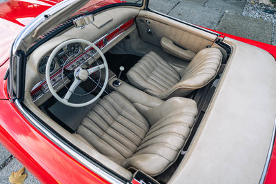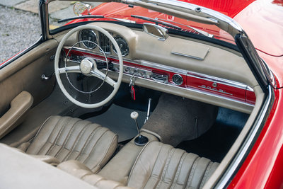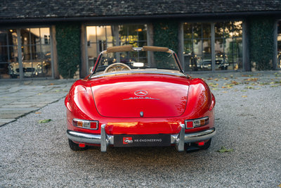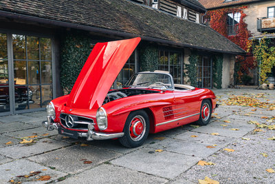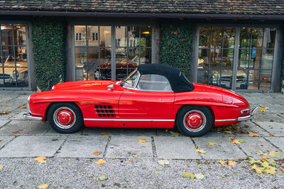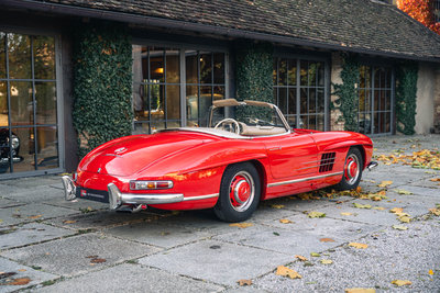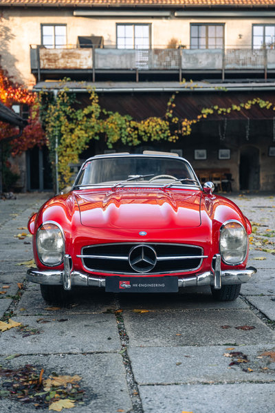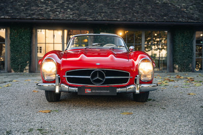 HK-ENGINEERING in Polling – seit 1984 weltweit führend in der Restaurierung und im Handel exklusiver Mercedes-Benz 300 SL sowie Ihr verlässlicher Partner im Handel mit klassischen Automobilen. Mit Leidenschaft und höchstem Qualitätsanspruch widmen wir uns einzigartigen Fahrzeugen, die Werte bewahren und Emotionen wecken. Neben dem hier angebotenen Fahrzeug halten wir jederzeit eine erlesene Auswahl an 300 SL sowie weiteren Klassikern für Sie bereit, sprechen Sie uns gerne an. Highlights: • 1958 Mercedes-Benz 300 SL Roadster mit matching numbers, seit 12 Jahren im Familienbesitz – ein sehr interessantes Projekt mit Potenzial für weiterführende Arbeiten nach individuellen Vorstellungen • Laut vorliegender Mercedes-Benz Wagenkarte und Lieferschein erfolgte die Erstauslieferung am 4. Mai 1959 über Mercedes-Benz Sales Inc., South Bend (USA). Die bei Bestellung gewählte Sonderausstattung umfasste neben der US-Ausführung ein Becker Mexico Radio sowie den Vermerk „250 Meilen eingefahren“ inklusive anschließend durchzuführendem ersten Kundendienst • Ab Werk in einer besonderen Farbkombination ausgeliefert: elfenbeinfarbene Lackierung (DB 608) in Verbindung mit hellgrauer Lederausstattung (Code 955) und schwarzem Verdeck • Laut 300 SL Roadster Register zwei bekannte Vorbesitzer in den USA sowie ein Besitzer in Belgien (2009–2013) • Inklusive vorliegendem Klaus-Kukuk-Gutachten mit forensischer Untersuchung des Rahmens sowie Überprüfung der relevanten Nummern • matching numbers von Fahrgestell, Motor, Karosserie sowie Vorder- und Hinterachse Irrtümer für dieses Angebot sind ausdrücklich vorbehalten. Ausschlaggebend sind einzig und allein die Vereinbarungen im Kaufvertrag.