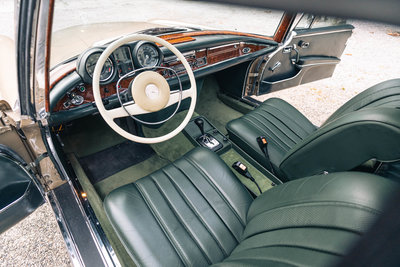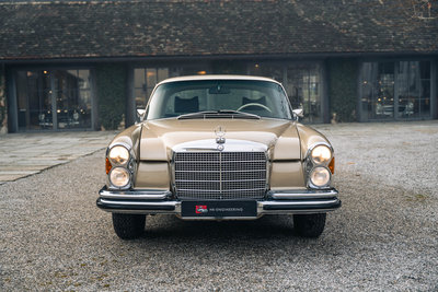 HIGHLIGHTS: • Wunderschönes Mercedes-Benz 280 SE 3.5 Coupé in der seltenen Farbe DB 462 Sandbeige-Metallic, kombiniert mit einem edlen dunkelgrünen Lederinterieur • Einer von lediglich 3.270 produzierten 8-Zylinder-Flachkühler Coupes mit 200 PS sowie begehrtem Schiebedach ab Werk • Laut Mercedes-Benz Datenkarte am 24. November 1970 fertiggestellt und am 6. Oktober 1971 an Herrn Dr. P. Mehler aus Freudenstadt erstmals ausgeliefert • Seit 2003 lediglich zwei Vorbesitzer, gemäß vorliegenden historischen Fahrzeugunterlagen insgesamt aus fünfter Hand • Laut Gutachten des Präsidenten des Mercedes-Benz 190 SL Clubs sowie DEUVET- und FIVA-Passprüfers handelt es sich um ein Fahrzeug mit ausgezeichneter Substanz, teilweise originalem Interieur und hervorragenden Spaltmaßen • Laut Mercedes-Benz Datenkarte verfügt das Fahrzeug über die begehrten „Matching Numbers“ Zwischenverkauf und Irrtümer für dieses Angebot sind ausdrücklich vorbehalten. Ausschlaggebend sind einzig und allein die Vereinbarungen im Kaufvertrag.