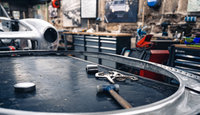 The body construction department processes and finishes all sheet-metal parts with extceptional precision for the Mercedes-Benz 300 SL Coupé and Roadster. The high level of finishing level can only be attained through the use of forms and molds developed in the company. This applies to both steel and aluminum sheets and work. Using this know how the filler and weld can be kept to a minimum so that a perfect surface and clearance can be achieved. Additionally, the use of precision frame gauges for Roadsters and Coupés it can be guaranteed that Tubular Frames with hidden accident damage are restored to the original factory specifications.