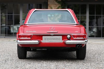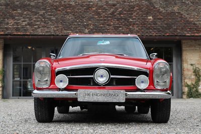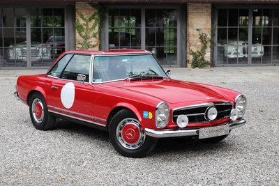 The famous Pagoda was used immediately after it was introduced in 1963 by the famous Mercedes-Benz works driver, Eugen Böhringer, in some long-distance rallies to give the vehicle the image of a real sports car. Our Mercedes-Benz 230 SL Pagoda was completely restored by Kienle on behalf of a passionate collector and was constructed in the same way as the original Böhringer car. A German 230 SL pagoda in the original condition, only three previous owners and with an old cardboard letter and matching numbers, served as the perfect starting point for the restoration. Compared to the production vehicle, the omission of the convertible top, performance increase, 100 liter fuel tank, reinforced springs / clutch / shock absorber, improved cooling, sports exhaust system, underride protection, weight optimization through lightweight components, as well as the installation of an original ZF 5-speed gearbox were changed, as with the original rally vehicle. All work was of course recorded in an extensive photo documentation. We have invoices totaling € 160,000. The last maintenance for € 3,800 by Mercedes-Benz took place in August 2019. Secure this unique rally Pagoda in excellent condition.