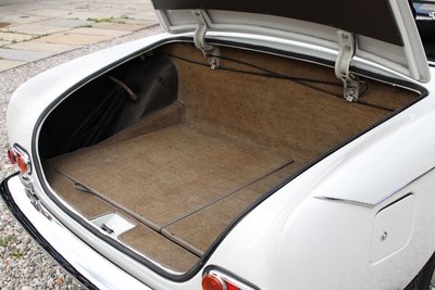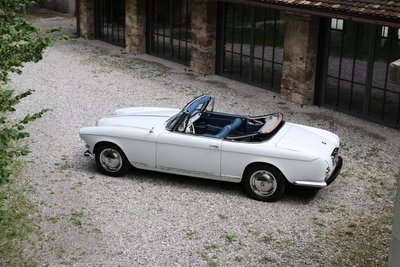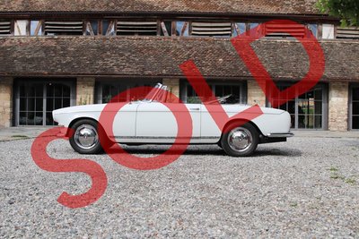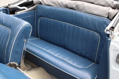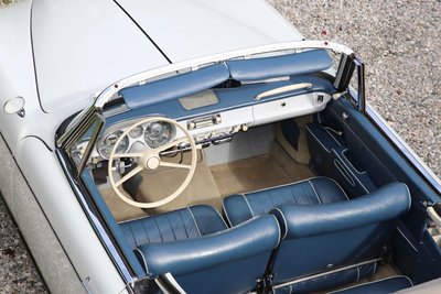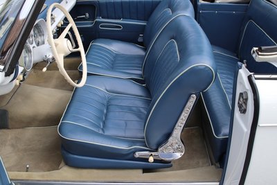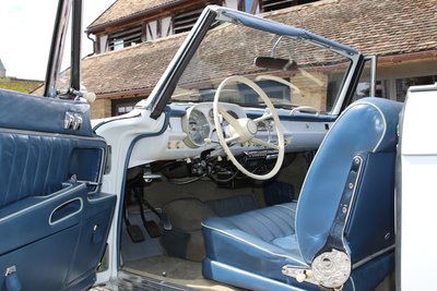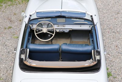 We offer one of only 78 produced BMW 503 Series I convertibles in original factory combination with papyrus white paint, blue leather interior and a black soft top. According to BMW Classic, our Spanish one owner car was delivered new to Trema Osnur S.A. on October 9th, 1956 delivered to Madrid, Spain and admitted there on April 16th, 1957 to Elisabeth Horcher. Originally from Germany, the Horcher restaurant family ran one of the most famous and upscale restaurants in Berlin between 1904-1944, and still today in the center of Madrid. The convertible is in very good original condition with first leather interior and a read mileage of only 53,000 kilometers. In recent years, the car received a new paint job and revision of the technology. Take this absolute opportunity to acquire such an extremely rare 503 convertible one owner car and with coveted matching numbers.